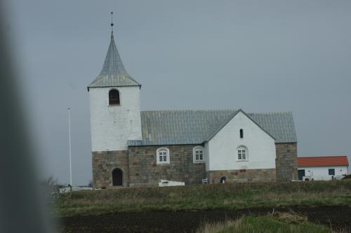 Quelle Internet: Die Kirche von Fjaltring ist in den Jahren 1100 gebaut und hat eine dreiflügelige Altartafel, die auf das Jahr, 1450 datiert ist. Das romanische Granit-Taufbecken ist das Ursprüngliche. Die Kirche liegt einen Steinwurf entfernt die Nordsee. Bei der Fjaltring Kirche stehen 2 Granit Skulpturen von Laila Westergaard.