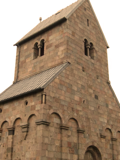 Die Kirche in Hee ist mit ihrem besonderen Turm, trotz einer groben Restaurierung 1882 - 1884, eines der bedeutendsten romanischen Bauwerke des Landes. Die Kirche wurde vermutlich um 1140 und der Turm um 1200 gebaut. Romanischer Chor und Schiff aus Granitquadern mit 2 spätgotischen Anbauten nach Süden im romanischen Stil, aufgebaut mit Granitquadern der abgerissenen No Kirche (aus diesem Grund werden die Anbauten immer noch "No Kirche" genannt) und einer hochromanischen Westpartie, deren unteres Stockwerk die gleiche Breite wie das Schiff hat, aber höher ist. Der etwas schmalere Turmabschluss bildet das obere Stockwerk und besteht ebenfalls aus Granitquadern. Ein Stück über dem Portal sieht man ein paar hervorspringende groteske Menschenköpfe. Die Altartafel ist eine ansehnliche Arbeit aus der Spätrenaissance von 1635. Im Chor befindet sich ein Küsterstuhl, der die Wappen von Juel und Munk trägt (spätgotischer Stil mit der Inschrift 1523) und ein Pfarrerstuhl (reich geschmückt im Renaissancestil um 1600). Im Schiff hängt ein schönes gotisches Chorbogenkruzifix von ca. 1450.