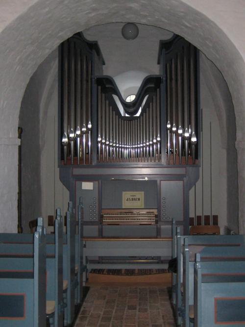 Die Kirche in Husby hatte ich schon 2008 besucht, umso überraschter war ich, als ich 2012 wieder die kleine Kirche mit dem schönen Glockenspiel aufsuchte und eine neue Orgel vorfand. Deshalb auf dieser Seite die Aufteilung in die neue und die alte Orgel (habe ich denn damals einen so großen Geldbetrag im Opferstock hinterlassen, dass man davon eine neue Orgel kaufen konnte ???).